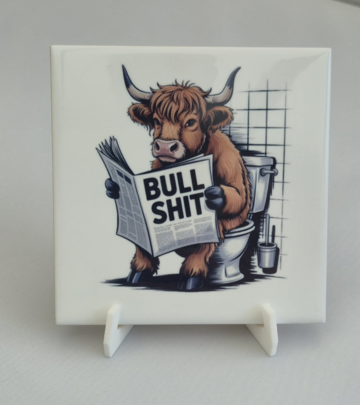 Grappige tegel met koe op toilet – inclusief houderGrappige tegel met koe op toilet – inclusief houder