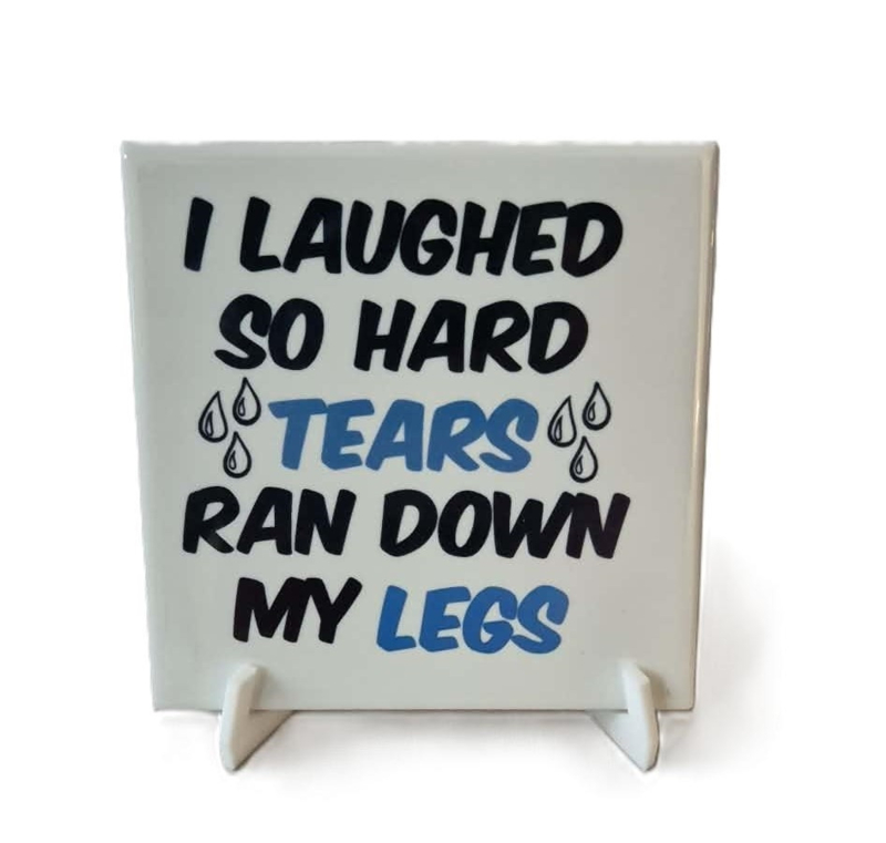 Grappige toilet tegel incl houder I laughed so hardBedrukte keramische toiletttegel met grappige spreuk (11x11 cm)