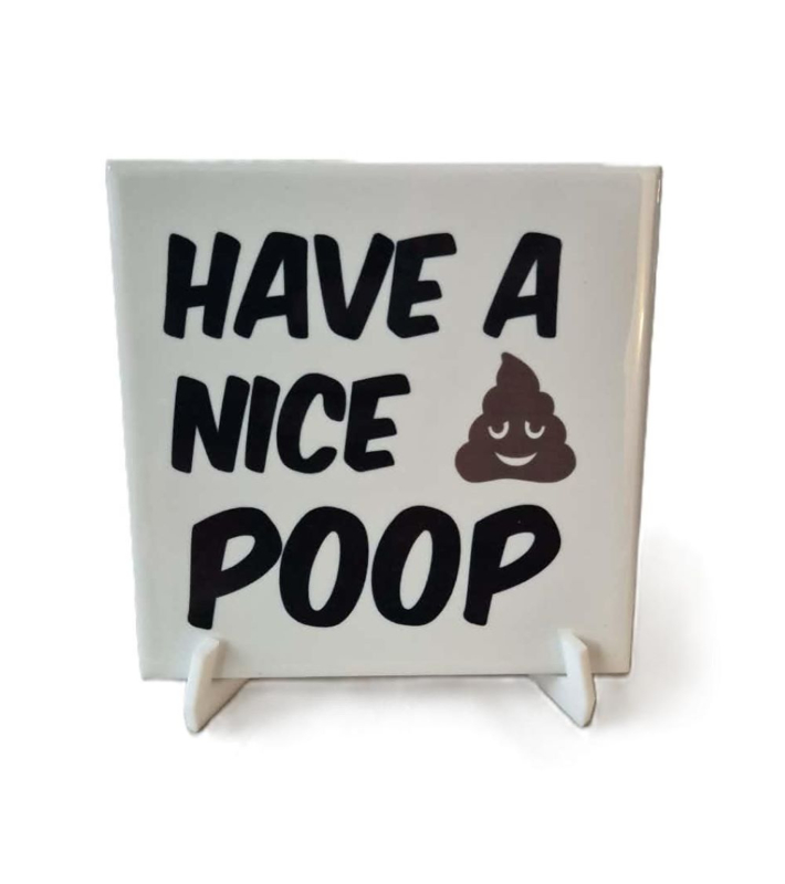 Grappige toilet tegel incl houder Have a nice poopedrukte keramische toiletttegel met grappige spreuk (11x11 cm)